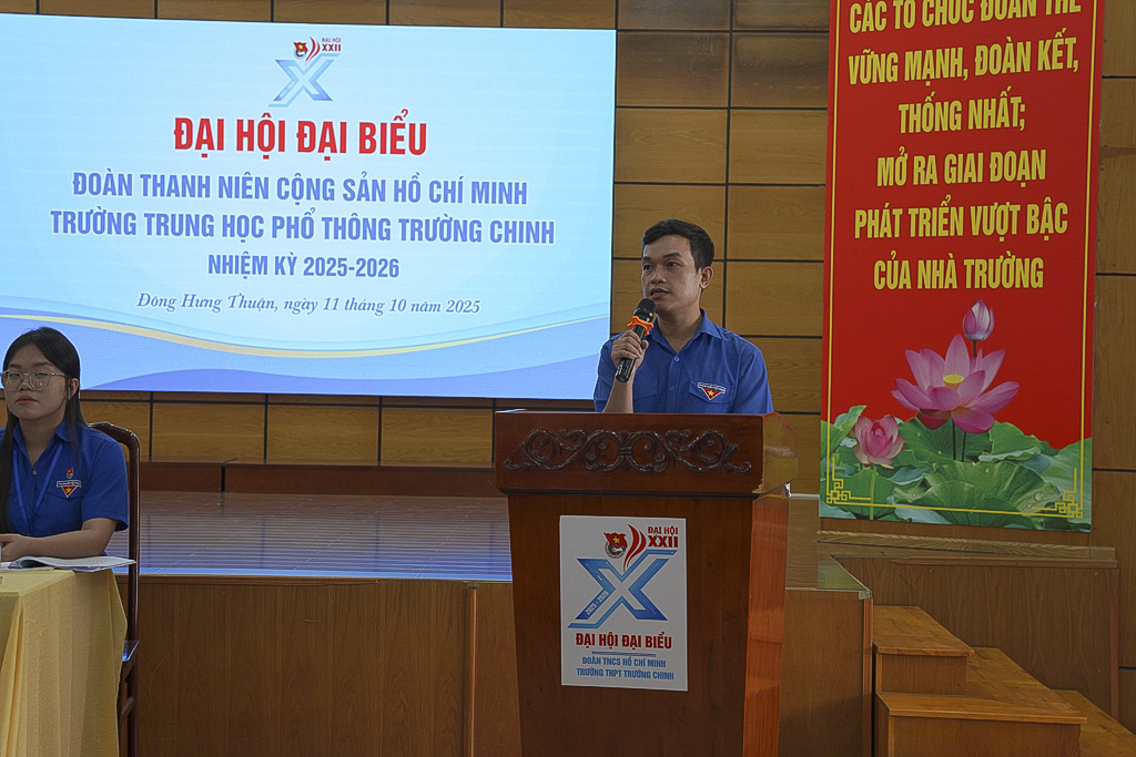 Đại hội đã nghe Báo cáo tổng kết công tác Đoàn và phong trào thanh niên nhiệm kỳ 2024-2025 và phương hướng hoạt động nhiệm kỳ 2025-2026. Với tinh thần dân chủ, khách quan, Đại hội đã bầu ra 15 đồng chí tiêu biểu, xuất sắc, có đủ phẩm chất và năng lực vào Ban Chấp hành Đoàn trường THPT Trường Chinh nhiệm kỳ 2025-2026.