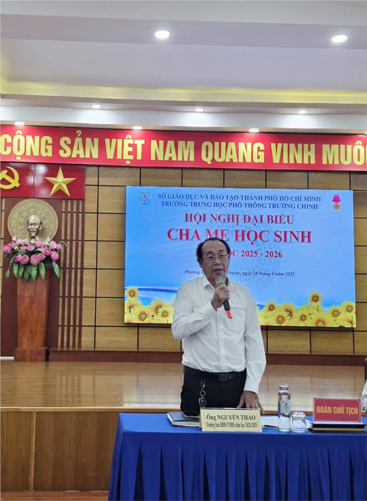 Sáng ngày 28 tháng 9 năm 2025, tại hội trường Trường THPT Trường Chinh đã long trọng tổ chức Hội nghị Đại biểu Cha mẹ học sinh (CMHS) năm học 2025-2026